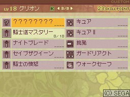 ところで、ナイトのスキルカスタム画面を見ていただきたいのですが、各項目の右下に「0/10」のような数字のあることがわかりますか?
